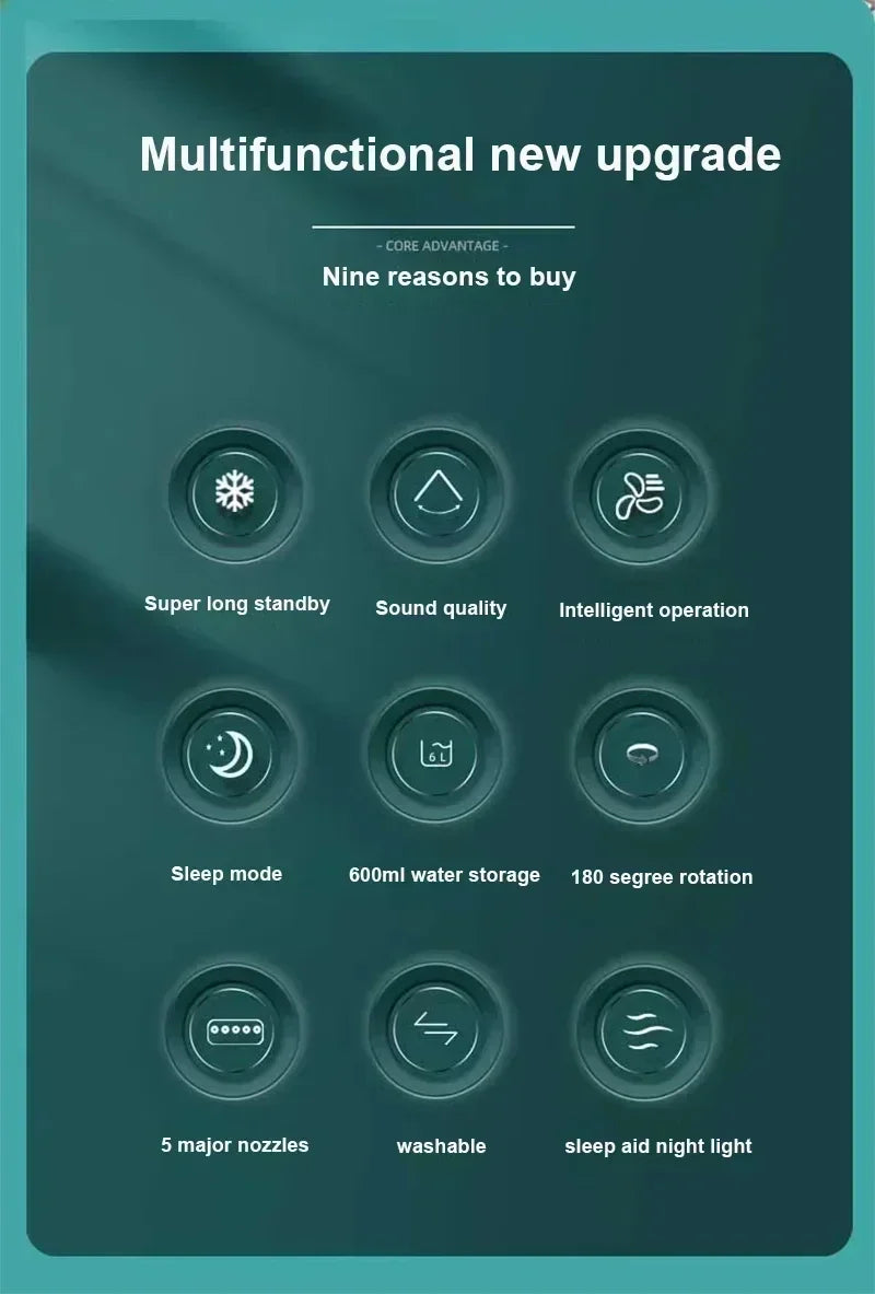 Stay cool and refreshed with this 3-in-1 Portable Cooling Fan, Humidifier, and Night Light, your perfect companion everywhere. Combining three essential functions into one sleek device, this mini air conditioner offers a refreshing breeze, soothing light, and humidification to create an ideal environment wherever you are. ❄️🌙